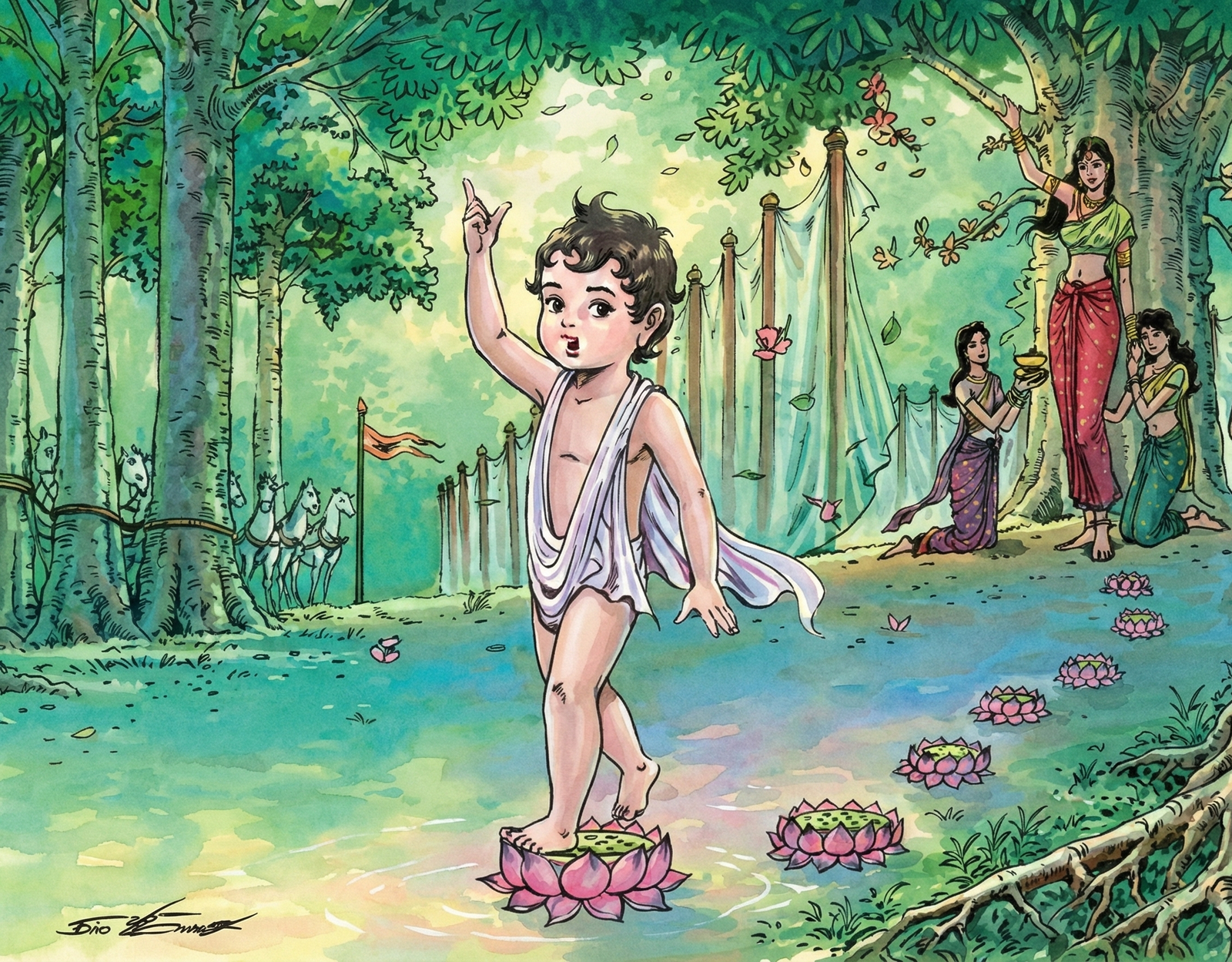 Growing up in the city of Kapilavatthu, Siddhartha enjoyed a privileged and protected life. His father, wishing to shield him from the hardships and uncertainties of the world, ensured he received the finest education, martial training, and a life surrounded by comfort. At the age of sixteen, Siddhartha married Princess Yasodhara, and together they had a son named Rahula.